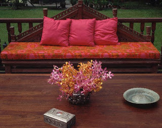 De egy kerti kanapé, bordó, piros, pink díszpárnákkal is fantasztikusan mutat.
